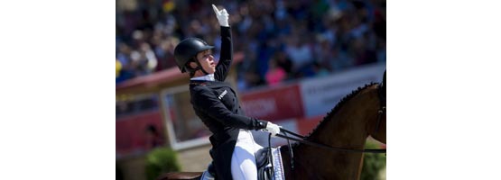 Фото: FEI/Jon Stroud Media Бетина Хой (Германия) установила новый рекорд чемпионата Европы, завершив манежную езду с результатом 24.6 шо и вывела на лидирующую позицию команду Германии. Она выступает на 11-летнем мерине вестфальской породы Сейджнур Медикотт. Хой, который в этом году исполнилось 54 года, уже выигрывала титул чемпионки Европы 20 лет назад в Бергли (Великобритания), выступая на лошади Уотермилл Стрим. В нынешнем сезоне она сделала серьезную заявку на победу в личном зачете. Напомним нашим читателям, что манежная езда в троеборье оценивается также, как тесты в выездке, а затем полученные проценты конвертируются в штрафные очки. Если взглянуть на результат Бетины Хой в процентах, он составил 83,59%! |