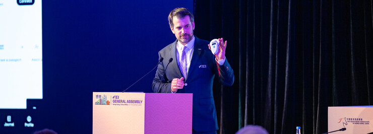 Фото: Гаспар Дюфор, директор технологического департамента FEI, представляет Equipass на Генеральной Ассамблее FEI (c) FEI / Shortcut by Jason