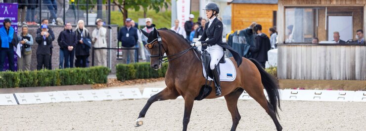 Фото: Вертиго под седлом Г.Айяче на чемпионате Европы по выездке 2025 года (с) equestrian.ru